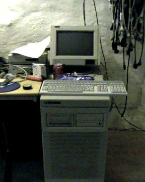 En suddig bild på en HP 9000 med en FACIT-terminal kopplad till sig.
